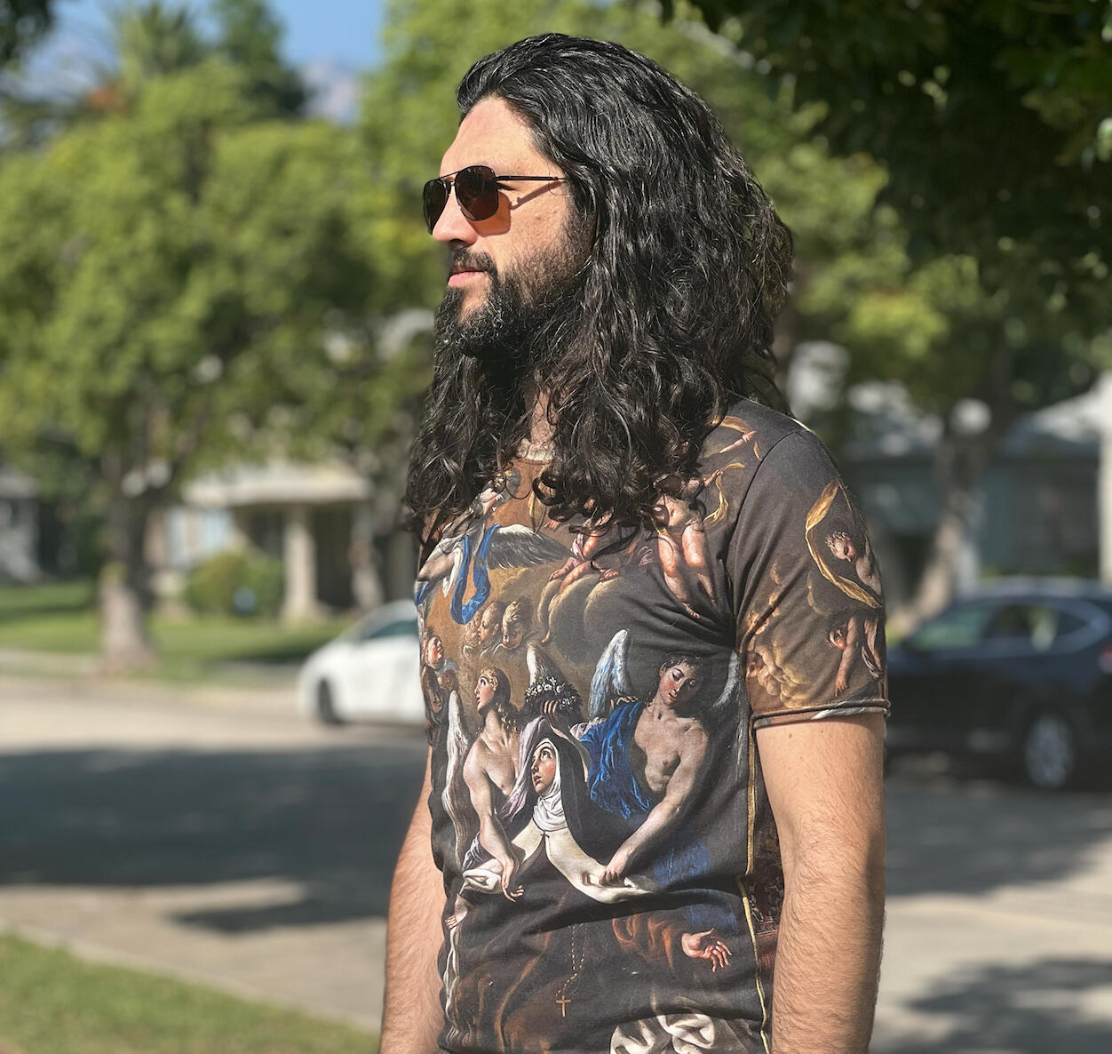 How can I dress like I love God? Priests, monks, and nuns have their answer, and I wanted mine. So, using art from the public domain, I made some devotional streetwear. They're the most conversation-starting clothes I’ve ever worn. Shop here